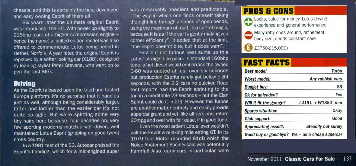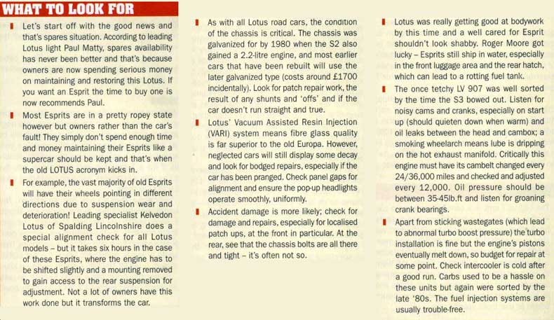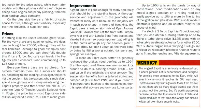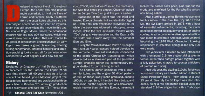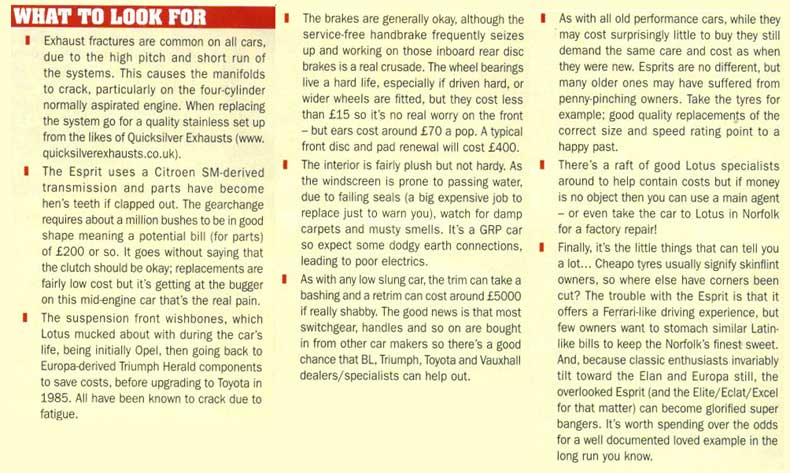home email news esprit models road tests buying an esprit running an esprit esprit owners maintenance pictures for sale history Lotus models links