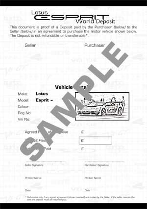 This pdf is to help you when you have decided on an Esprit to purchase and wish to place a deposit or have received a deposit on an Esprit you are selling.
