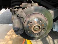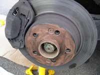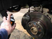 To clean them we purchased some brake cleaning fluid. All you do is soak the disc and pads and watch the dirty drip off. Easy to do and does make a difference to your brakes (if only for a short time). While each wheel is off you can check the brake lines for any sign of leaks.