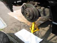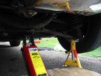This is how we Jack -up our Esprit (see guide here). You can do it your own way if you want. But make sure you use some form of Axle stand, as you don't want the Esprit coming down on you while you're under it. We've used two axle stands, although only one is shown. Remember safety first while working on your Esprit.