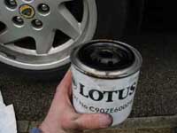 Once the filters removed (left), clean up the mounting with a cloth, then rub some new oil on the face of both the mounting and the new filter. This will stop it from seizing on and make it easier to remove next time. Once this is done, screw the new filter back onto your Esprit. Clockwise and only hand-tighten. Only use original Lotus oil filters.