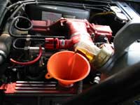 You can now fill your Esprit with new fresh oil. We used Mobile One (see lubricate page here), but we'll leave the choice of oil up to you. Our only advice would be to use the best you can. Use a funnel to put the oil in, as you don't want engine oil all over your engine. Add around 4 litres and then check the dipstick and add more oil, until you reach the maximum on the dipstick. Be careful not to over fill. Give the oil time to spread before checking the dipstick