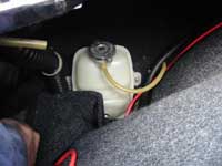 Brake fluid is under the front bonnet and under a plastic panel. Be careful handling brake fluid as this will damage your paintwork (as will clutch fluid). Top up and check for leaks. If you find any problems, get it checked by a Lotus Specialist. DON'T take any chances with your brake system.