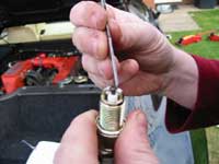 You can see above where to plugs were screwed into. Clean up this area with a rag or something. Next you need to set the gap in your new plugs. Our Esprit needs a gap of 0.9mm, you can find this out by looking in your owners manual.