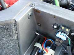 The valve is situated in the rear compartment behind the engine. Remove the six screws holding the panel in place.