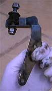 10. Undo the 13mm nuts at the top and bottom of the bracket. Both nuts have a washer and the bottom one also retains a wire. Notice the different nuts top and bottom.
