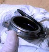 14. I found my cap had a bit of gunge on it so I took the opportunity to remove all that.15. Place new O-ring in place of old one. I don’t know if oil should be placed on the O-ring or the contact surface between the cap and engine block. As it is there to prevent oil loss, I assumed that it should remain dry and clean.