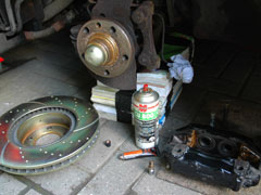 The thing to remember about replacing the disk is keeping things clean ! Firstly I always rub the wheel hub with some fine emery paper to remove dirt and corrosion on the mating faces, this cuts down on the possibility of the hub and the disk mating un-evenly together. The hub should be coated in copper grease to prevent corrosion occurring between the disk and the hub itself, finally it is worth checking and cleaning the mating faces on disk before fitting.