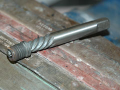 On the left is the screw after I had tried pretty much every conventional way to get it off. I drilled the head off very carefully using a 10mm drill bit, I was wary not to go in too far and hit the lip on the disk itself. Through the centre I ran a 6mm drill and used a stud extractor to gently ease the screw out. Replacements are cheap but it is not a common thread size so it's best giving someone like SJ Sportscars a ring to get a replacement.