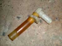 (11) I cut the new hose to length using a Stanley knife and heated the ends in boiling water. I then fitted and removed the plastic elbows to stretch the hose a little since it is a narrower bore than the original. You don’t want water in your petrol though, so let ‘em dry and have a cup of tea…