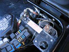 All in and the connection reattached. You'll see an ECU type box on the other side of the Esprit, near the water bottle for the windscreen washers. This is the control unit for the motors. This can get wet and we have been advised to drill a small hole below it to drain any water than may damage the unit. If you are having problems with your motors or lights (doesn't control the actual bulbs), then it's worth checking to see if this has any water damage and that the connections are clean. This unit can be refurb'd if damaged.