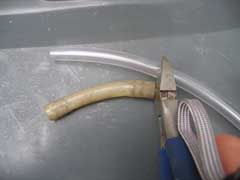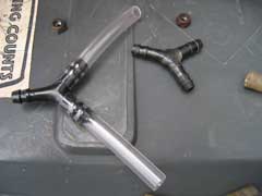 We cut our lengths from the pipe supplied to make up our new Y-piece. You can then reattach it to the pipe from the compressor. The kit actually comes with a long enough pipe to replace the piece that runs down from the compressor, but after feeling around, it's fed through at least two pieces of the bodywork and as the old pipe was ok, we decided not to make things too difficult.