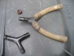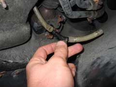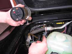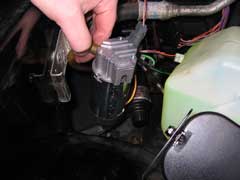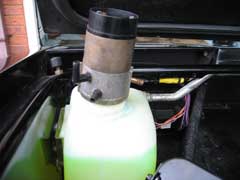 You can see the new smaller compressor fitting. Replace the washer bottle, clean up the fluid that leaked out and you're done! The old horn is shown above.