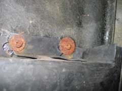 As you can see from above, the horns where turned in a little to fit in the space. The middle pic shows the bolts before we trimmed them. The gap between the top and the panel was pretty tight, so we also reversed the bracket to give a little more clearance.