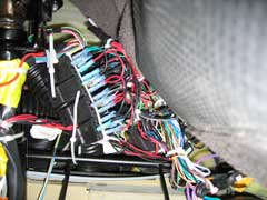 Reconnect both harness connectors. At this point you should be able to reconnect the battery and test everything. If it all works then take zip ties and tidy up the wiring. If you look under the dash close to the door you will see a lot of space available for you to tuck everything up there. Use zip ties to hold everything up there, but be careful not to impede the movement of the front bonnet release lever.