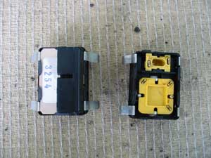 To get at the mirror control panel, you'll need to remove the door panel (see guide). Once this is off, you'll be able to remove the old panel. To do this simply pull out the connectors and push the panel out from behind. As you can see from the pictures above and below the old panel doesn't look like it's worn out from the top. But it's underneath that's the problems. The circuit board has parted company with the switch. This is a very common problem with this part.