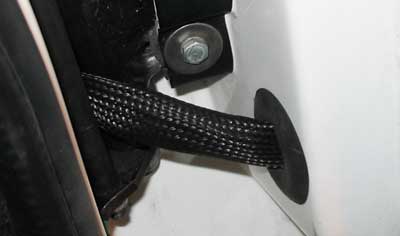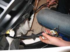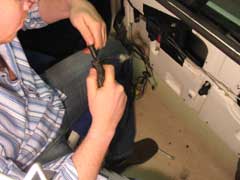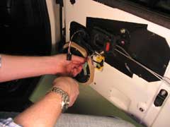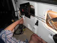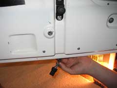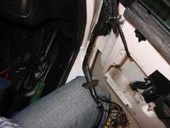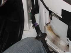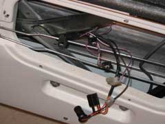 Now remove the wiring and its plugs out from the door with the cable grommet which is levered out (do not cut or remove the Grommet from the wiring harness). Note there is a certain amount of slack cable up inside the Body that can be pulled out.