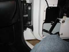 As you can see from above (left) this is the split sleeve. You can clearly see all the wiring open to the elements. First thing to do is to remove the door panel. Undo the lower screw holding the handle on.