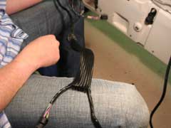 Fitting the New expandable Aircraft Quality Sleeving isn't a difficult as it may first seem. Cut a length at least a couple of inches longer than you need, as it will fray when pushing the cables thought.
