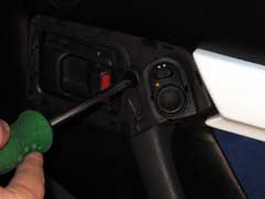 Now it's time to undo all the electrical items in the door (there's more than you think). These included, window motor, central locking motor and door switch and light. Unscrew the light and switch and unplug the wires. You also need to unplug the window motor and central locking plugs, which run right to the back of the door. The rocker switch attached to the central-locking doesn't need removing (we did) as it has a plug in the middle of the wire behind the door beam. You'll see it, but it may be taped up. It's a thick grey wire. Just unplug it there and save yourself the trouble of trying to get the rocker switch back on.