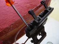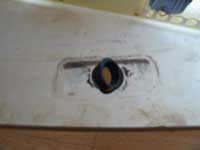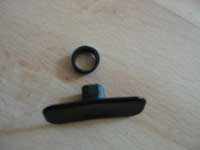 Don't forgot the rubber grommet that sits in the glass. Remove this and then clean the glass with some glass cleaner. You can now start to rebuild the tongue. Replace the rubber grommet and the bottom part of the support. Add the top half and use a new screw and washer to attach them firmly.