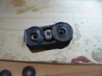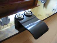 Now add the new rubber washers over the top of the support. Next you need to get the screw, washer and rubber washer together the line everything up. Line-up the tongue over the rubber washers and holes, with the tongue pointing downward (if you know what I mean). Now you can screw in the two new screws. Not difficult to do. Now before you tighten the screws, make sure your tongues are parallel to the sunroof. You can now fully tighten the screws to hold your tongues firmly in place. Be careful not to over tighten, as you'll split the rubber washers and could crack the glass (but that's unlikely).