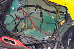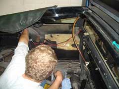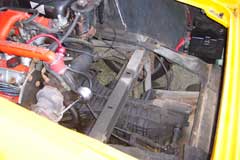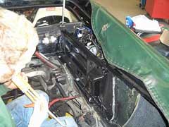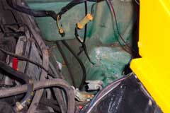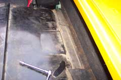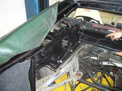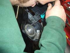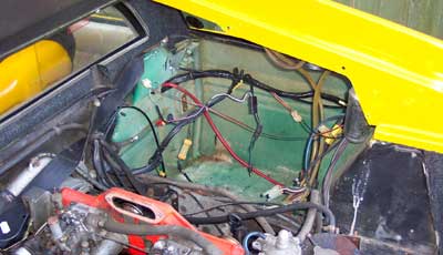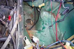 Remove 8 x bolts and four screws for floor and prise off. The bolts can give you a bit of trouble as the captive nuts usually spin in the holes. If this happens as it did to me then you have to get some mole grips snapped onto the of the captive nut underneath to prevent it from spinning. The floor is bonded in as well, so youll have to either use a screw drive to lift it up or a craft knife to cut the silicone around the floor. You have to unclip various electrical connections and I have one connection which was soldered so I had to cut it. Remove HT lead and rubber grommet through wall.