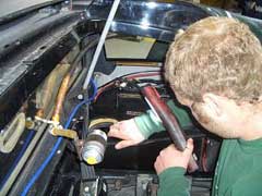 Remove the wire going from the coil to the distributor. The connector is located under the plenum. Note:- Make sure you connect this wire back. Its an easy mistake as I discovered because when you put the boot floor back, it masks this wore that dangles over your gearbox. There isnt another dangling wire to raise any alarm bells.