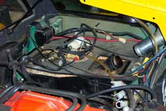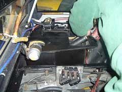 Relay cover removal. This is removed by undoing 6 x No.3 Allen Key headed screws. Undo electrical connections above fuel tank that go to relay area. Important note: Most of these are self explanatory and will only go back into their respective slots. It may be beneficial to mark these plugs as there will be some spares left over which can sometimes confuse you.