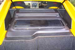 The side wall should prise away, you may have to ease it around from your bodywork as it's hooked underneath it. Note: Unfortunately I had an alarm wire, which passed through one of the holes of the side wall. I had to slice the sidewall from the hole to outside to allow the wire to come out of the sidewall. Remove seat belt cover (four tiny Philips headed screws which are a pain to get to). Undo seat belt bolts which as a 17mm head and pull to one side. Undo two 13mm headed bolts at fuel filler end and two 13mm headed nuts at front end. The plywood top should now come off. You may have to remove the fuel filter first.