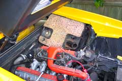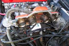 Additional Note:- When my car had been put all back together again and was running, the revs were really high. I discovered that I had inadvertently leant on the throttle body bracket (at the front bulkhead end, next to carbs). This bracket houses two electronic devices and the bracket looks pretty strong. I think its made of aluminium and discovered that this bends easy. If you lean on it then the revs goes up. I simply used my hands and bent it back again thus the revs went back down to normal again.