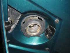 The first job was to remove the rear deck, having first marked to bracket for alignment. It is possible with the deck in place, but a hell of a lot easier with it off. Stick the car on axle stands and let it cool down. While the car was cooling down we had a look around for things to do and found that the body-filler neck grommet was in very bad shape - we replaced it.