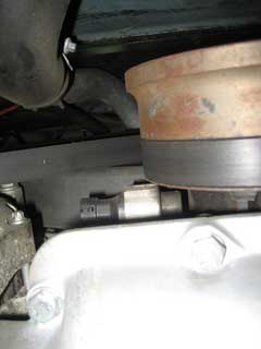Once the tolerance pins have confirmed that the cam/crank position and timing is correct, you must remove the pins :rolleyes: We were deep in instruction mode and forgot to take a picture..... here is one from the Library. From underneath, attach a timing pointer to a convenient sump bolt and fix your timing disc to the front of the TV damper.