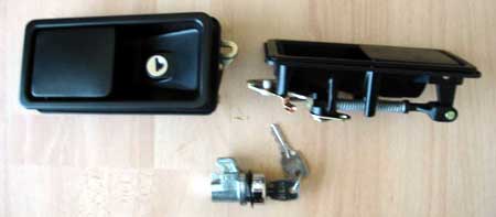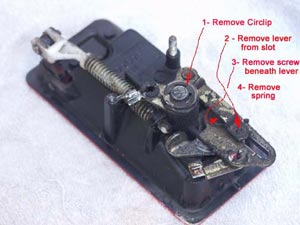 Above it a picture of the finished handle. Also I've included a diagram of how to remove the lock. You may wish to change just the lock or some people like to paint the handles body colour, which requires the locks to be removed.