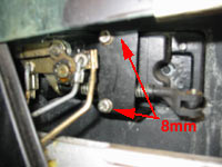 You can see from above how bad my door handle looked. To start you'll need to remove the inner door panel (see guide here). Once this is done you can get at the rear of the door handle. The handle is held in place by a metal support, secured by two 8mm bolts.