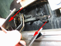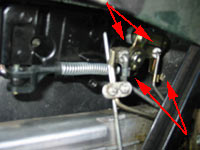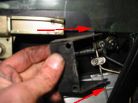 Once the rods are back in place, I used a grease spray to protect the workings. This can be brought cheaply at any auto parts store. The original handle workings you'll see are covered in grease. You can now put the metal support back in. This lines up with the holes in the new handle. Replace the bolts and make sure it's secure. You must now check the rods and clips are still fix. Now you can test the handle works. Check the central locking, the key lock and the alarm lock. Also remember to check the windows aren't being fouled.