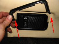 Remove the two screws at either end of the panel. This will loosen the bottom of the panel. Next peel back the leather trim inside the door release (if it's still there) and undo the three screws. These do not need completely removing, but if you do, you'll need to watch out for the washers dropping out. There not difficult to refit if it happens (see below).