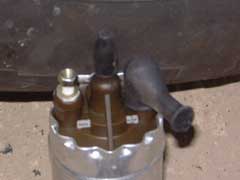 Now you can tighten the bracket onto the pump itself - Dont forget the washer that goes under the nut. Everything is now in place and all that remains is to bolt the two electrical connectors onto the pump. They are keyed by size so will only go on the right way (assuming you wired them correctly!) This is quite awkward as access is rather limited. Tidy everything away, make sure the whole area is dry and free from petrol. Move the tray containing any spillage completely away from the area. As you can see, luckily, there wasn't very much (right).