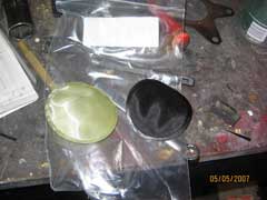 Once you do this, carefully pull the pump assembly up. Have a large rag ready to carry the unit out of the car with as it will be dripping fuel. Here's what the assembly looks like. The fuel level sending unit is on the assembly as well. Don't loose the float or you'll be empty all the time