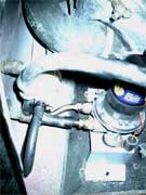 Did I mention you need a torch! Even on a bright sunny day (and we don’t have many of ‘em) it’s still very dark under there. So even with a flash, the picture of the old pump, squirted with WD40, didn’t turn out very well, sorry. After they have soaked long enough and you’ve finished off a packet of Jaffa Cakes, loosen, but DO NOT UNDO the nuts around the in/out pipes.