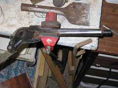 I ordered a second-hand handbrake lever from Lotusbits.com. It had light surface rust which was removed and the lever was primed with anti-corrosive primer and then sprayed black. The rubber handle simply slides off – if it is glued on then there is no choice but to cut it off – there are replacements available.