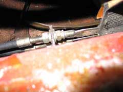 With the handbrake lever removed you can now see the mounting more clearly – note the micro switch in the picture – one of the wires is disconnected. While you have the lever off it is worthwhile just cleaning the contacts on the switch and getting rid of the mess that usually hides down the sides.