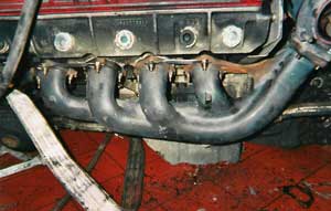 After finding out that there was a crack in the Manifold of LEW's Esprit, we started looking for somebody to do the job. Changing an Esprit Manifold is one of the hardest jobs to undertake on an Esprit. There are two ways of tackling the problem, leave the engine in, or take it out. Most Independents where quoting a cheap price leaving the engine in, but saying if the manifold was seized on then the engine would have to come out, almost doubling the labour charges, and with it the bill. Those few that said they would take the engine out, did so because in their experience most of the time they would end up taking it out anyway. They where quoting a Minimum price for labour as well, saying if their were problems with removing the studs then the charge would go up.