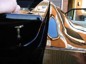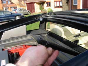 Once the hatch is removed, place it somewhere safe that won't scratch the paintwork. Refitting the hatch is of course the same as removing it, only in reverse. Support the hatch in place over the Esprit while the bolts are refitted both sides. Now the trick to realign the hatch is not to attach the struts. These will push the bolts out of alignment if they're not fully tighten.