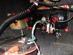 The White Connection box is attached to the rear light cluster with one phillips head screw. Undo this screw and gently pull the connection box away from the cluster. Disconnect the four bulbs by twisting the plastic holder anti-clockwise. Then remove the eight 10 mm nuts as shown above.