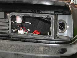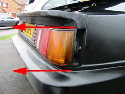 The rear light cluster can then be carefully removed from the bodywork, starting from the indicator gently pull the light cluster out. If you have a problem freeing the inside edge from the number plate surround, there is two screw inside the boot, loosen one of these and this will loosen the numberplate surround making it easier to remove the cluster. Making sure not to forget the rubber gaskets, replace the cluster and follow the instructions in reverse for re-fitting.