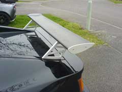 We hear of a original wing going from a Sport 350 that had the late V8 wing put on. But at £1500 it was a little pricey. We spoke to SWLC who have a large stock of Lotus parts and they had an original wing off a racecar. I was just the carbon wing and brakelight. It had end-plates on, but they weren't originals and didn't look too good. The wing was in pretty good condition with only a couple of marks on. We purchased it at Donington 2005 and then a little later started sorting out the other parts. In the end we had to purchase new original Lotus parts, which were very expensive, but we finally had a wing to fit.