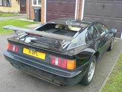 Time to fit a wing. We didn't want to put an early SE wing on, didn't fancy the S4. We've seen a later V8 wing on an earlier Esprit and didn't like the look as much as the Sport 300/S4s/V8 wing, which looks good, isn't too expensive, but kills all rear visibility, needs spraying. Lotus' testing revealed the Sport 350's carbon wing gives the best stability and downforce out of all the wings fitted to the Esprit. We also loved the carbon, high-level brake light and the modern look. Only trouble is, it's expensive and rare!