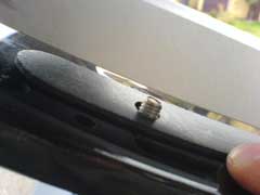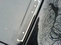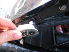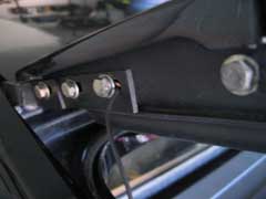 The bottom of the strut has two holes and two threaded holes. The wires for the brake light run down one of the holes on one side. To protect the bodywork and strut we used some masking tape on the bottom of the strut before marking up. This also holds the wires in flat, so it's easy to mark-up.