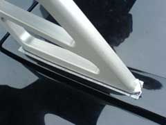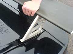 We also placed some masking tape on the bodywork where the wing will be mounted. Get someone to hold the wind in place. We then measured up and made sure the wing was centred on the tailgate. Moving it bit-by-bit to get it in the right place. You can then draw around the strut to show you where it will be mounted.